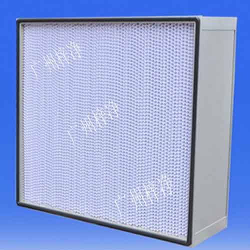 亚高效过滤器采用超细玻璃纤维滤纸或聚丙烯滤纸为滤材,经密摺而成。密摺的滤纸由纸隔板或铝箔隔板做成的小插件间隔,保持流畅通道,外框为镀锌板、不锈钢板或铝合金型材,用新型聚氨酯密封胶密封。