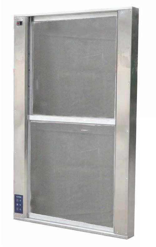 自动升降传递窗与普通传递窗是设置在不同级加紧的洁净区及洁净区与非洁净区之间的隔墙上,用来相互传递物品的净化设备。自动升降传递窗根据生产产品的工艺需要可制作成风淋传递窗和普通传递窗。风淋传递窗在物品传递时能产生洁净的高速气流吹淋物品,清除物品上的尘埃,使洁净室不受污染。