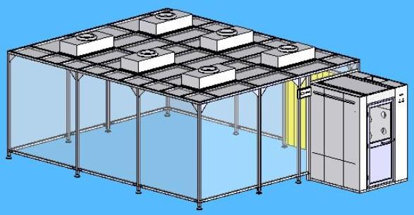 其次,它们所用的材料也不同,洁净棚一般采用工业铝型材作为框架,四周和顶部都安装有机玻璃,或者防静电网格帘,以达到视觉通透性。看起来就像一座玻璃房子。送风部用均采用FFU洁净送风单元。洁净室就相当于把一个大房间进行“豪华装修”,吊顶采用泡沫彩钢或是岩棉板,有独立的空调送风系统,空气经过初中高效三级过滤,人员及物料配有风淋室及传递窗洁净过滤。