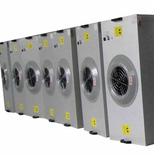 风机从FFU顶部将空气吸入,经初效过滤器,高效过滤器过滤,过滤后的洁净空气在整个出风面以0.45m/s±20%的风速匀速送出到万级洁净棚内。形成均流层,使洁净空气气流呈垂直单向流,从而保证了工作区内所要求的洁净度。