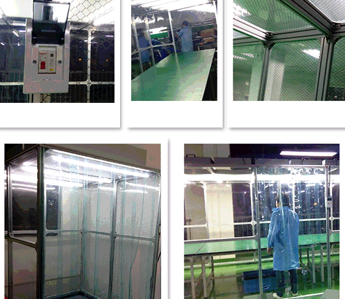 2、防静电垂帘:四周围用防静电垂帘(或钢化玻璃),防静电效果好、透明度高、网格清晰、柔韧度好、不变形、不易老化;