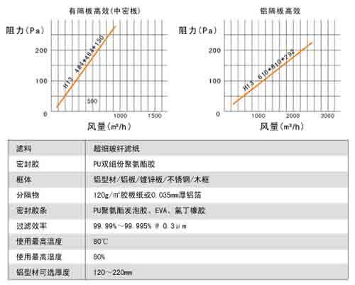 纸隔板高效过滤器过滤效率等级: H11,H12,H13,H14 (EN1822)
