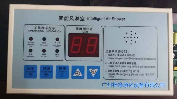 b、风淋按键:在内外门关闭后,按下手动按键,系统即转入风淋过程。此按键主要用于门磁、红外失灵或风机维护检修时。